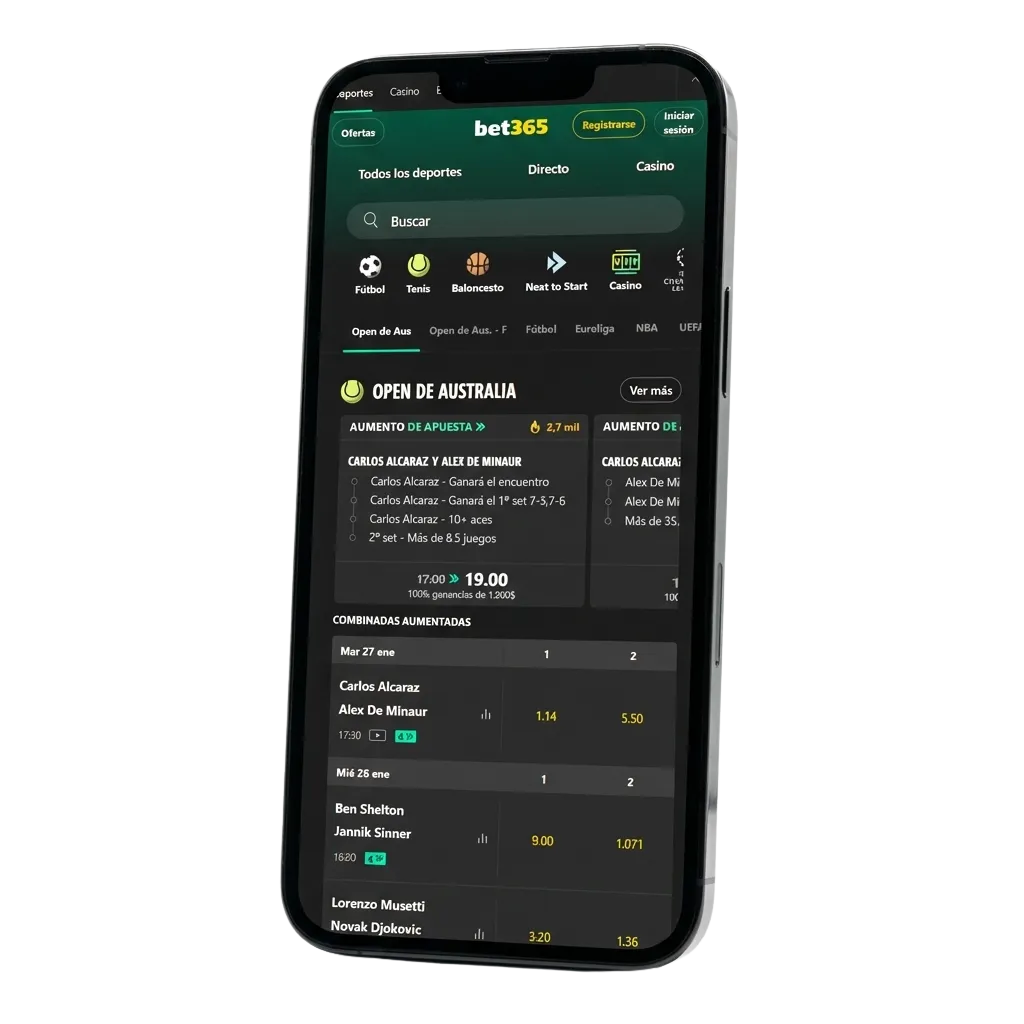 Descarga la aplicación Bet365 en tu iPhone o iPad y disfruta de apuestas deportivas y casino en cualquier momento. La app te permite acceder a todos los mercados de apuestas, juegos de casino en vivo y gestionar tu cuenta desde la comodidad de tu dispositivo móvil. Regístrate ahora y recibe hasta $30 en Créditos de Apuesta para empezar a apostar en tus deportes favoritos. La instalación es rápida y no requiere configuraciones complicadas.