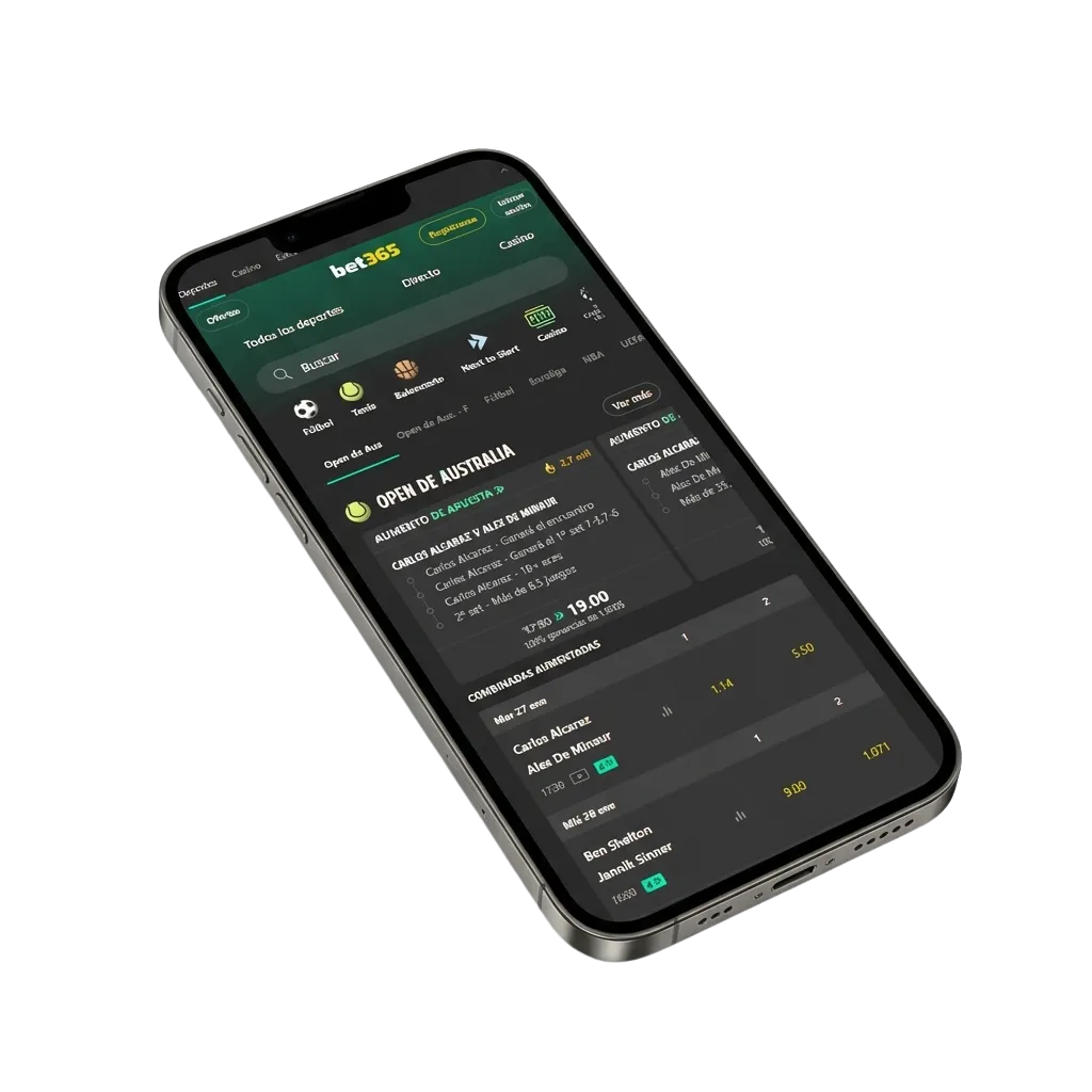La interfaz móvil de Bet365 está diseñada para navegación rápida entre secciones de deportes, casino en vivo y apuestas en directo. El menú inferior te permite cambiar entre categorías con un solo toque, y las cuotas se actualizan en tiempo real durante los eventos.